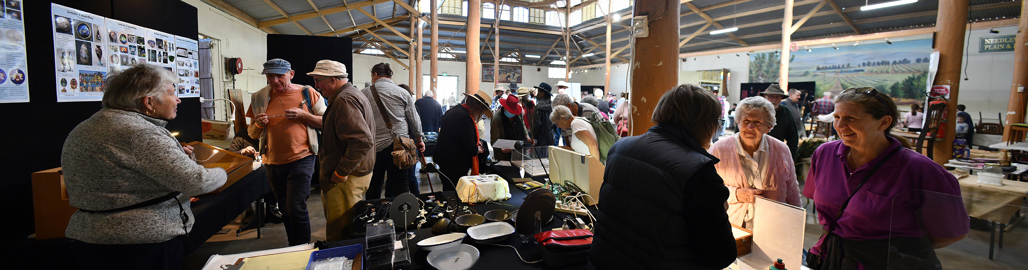 This is the second year that the Enamellers Association has participated in the Bathurst Heritage Trades Trail. This is a large fair that promotes old arts and crafts. It is held over a weekend in April at the Showground. This year over 3,000 people attended and the Association’s stall created a great deal of interest. Our attending members demonstrated many of the skills involved in enamelling and related activities. Our members saw many different traditional crafts expertly executed.